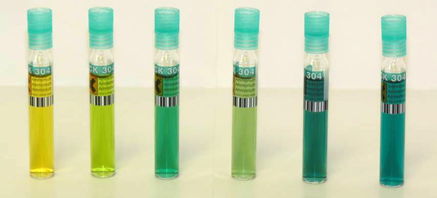 Este cambio en los valores de los efluentes puede pasar desapercibido si continúa utilizando un test fotométrico de rango bajo basado en la reacción del azul de indofenol. Esto se debe a que un exceso considerable del rango de medición produce un tinte azulado de la cubeta, lo que el fotómetro detecta como "dentro del rango de medición".